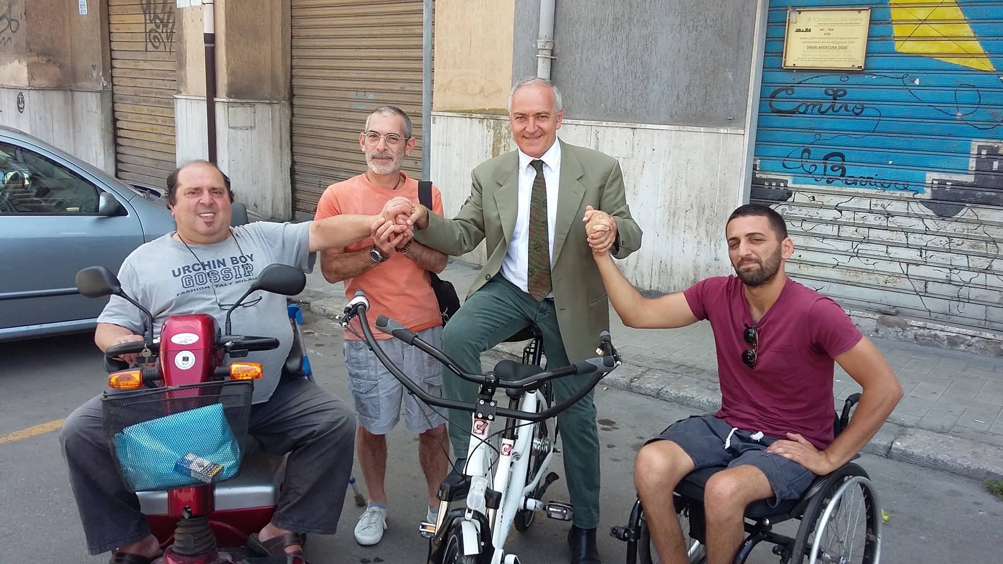 Il 12 giugno 2018, alle ore 10:30, alla presenza del Dott. Giuseppe Tulipani, Garante delle persone disabili della Regione Puglia, del Sig. Francesco Riondino, Presidente del CSV Taranto, dell’Avv. ssa Gaia Silvestri, Componente della Commissione Pari Opportunità del Comune di Taranto, si è svolta la conferenza stampa, convocata dall’Associazione “Contro le Barriere”, presso la propria sede, per comunicare le modalità dell’uso dell’HUGBIKE, ricevuta in donazione, sia a Taranto che nella Regione Puglia.