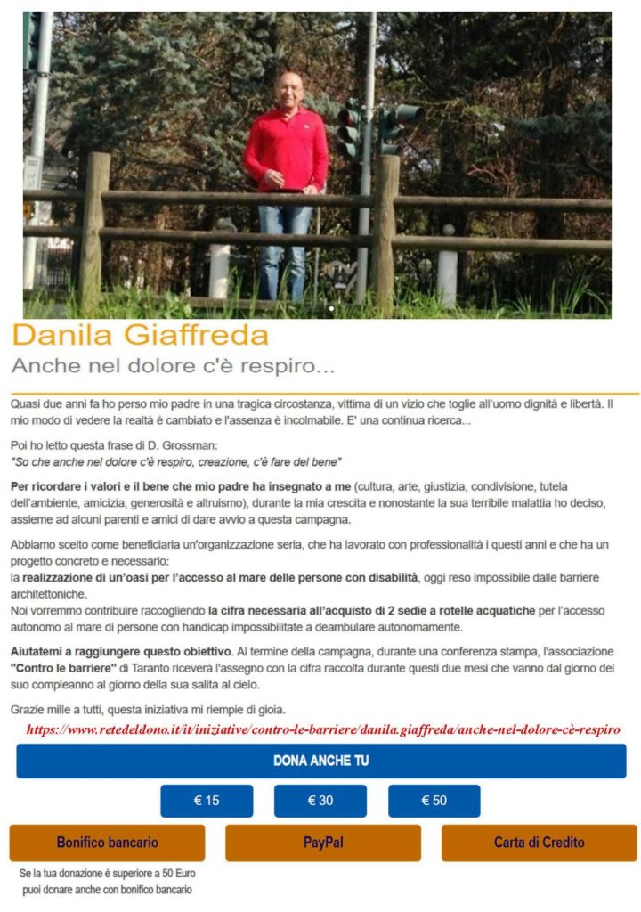 Intanto, qualcuno ci sta aiutando per l’anno prossimo a realizzare un oasi attrezzata con tre postazioni per persone disabili motorie, dotate di due sedie Sand&Sea: