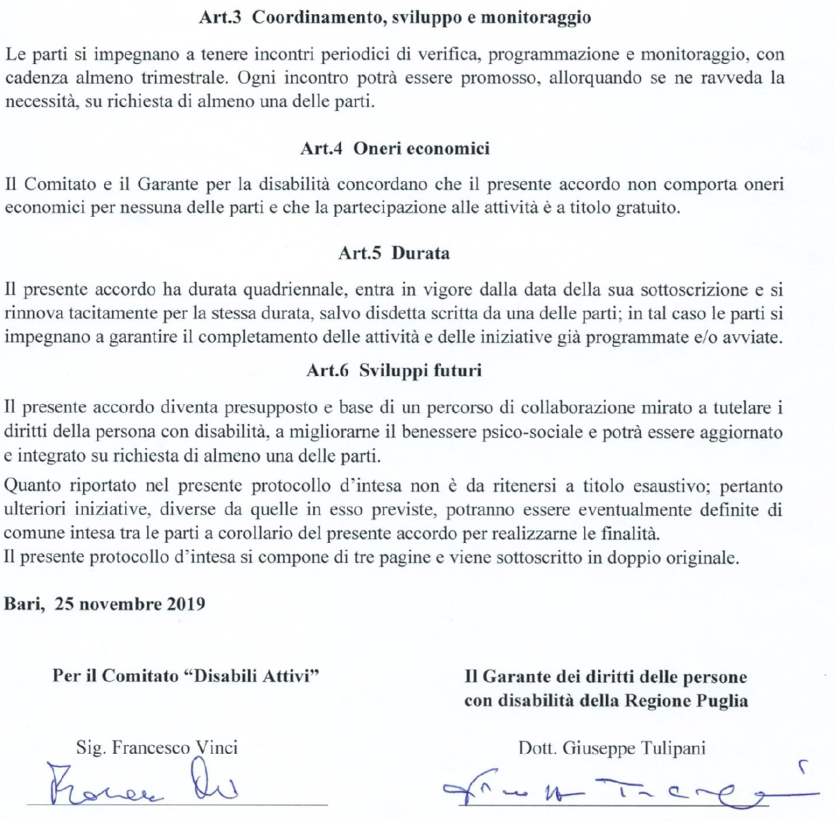 Con il presente Protocollo di Intesa il Garante e il Comitato s’impegnano a, compiere le seguenti azioni, in favore delle persone con disabilità fisica, psichica, relazione e sensoriale: