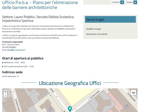 Il provvedimento è stato illustrato dal sindaco, Carlo Salvemini, e dal docente dell’Università di Firenze, Antonio Lauria. È stata definita così la cornice di regole e procedure nella quale si muoveranno l’ufficio P.E.B.A. (Piano Eliminazione Barriere Architettoniche) presso il settore Lavori Pubblici, la disability manager, Francesca Rossi, e la garante dei diritti delle persone con disabilità, Maria Pia Desantis, il cui incarico è stato ufficializzato nei giorni scorsi.