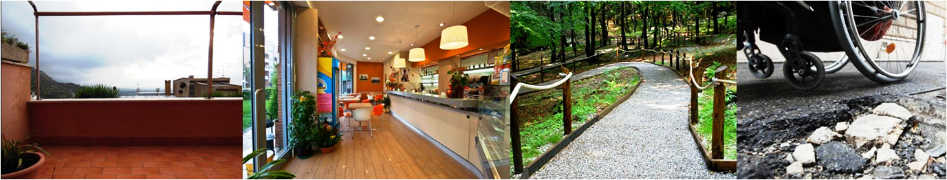 meno evidenti: parapetti “pieni”, che impediscono la visibilità a una persona in carrozzina o di bassa statura; i banconi dei bar troppo alti, sentieri di ghiaia o con fondo dissestato;
