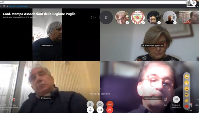 Il 5 maggio 2020 alle ore 11:00, si è svolta la videoconferenza stampa, sulla piattaforma Skype voluta dalle seguenti Associazioni della Regione Puglia: