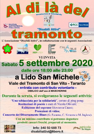 “Disabili Attivi”, per organizzare questo evento si è avvalsa della collaborazione delle seguenti Associazioni: Comitato 16 Novembre, Contro le Barriere”, DeepGreen, Eidos 72029, Gruppo della Protezione Civile di Taranto e Italiabile onlus.
