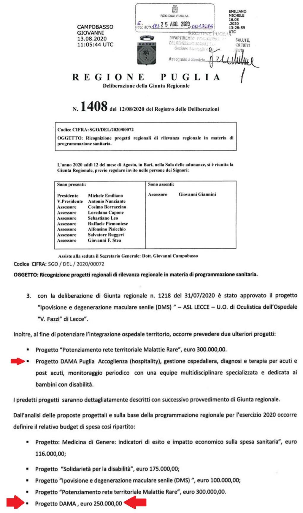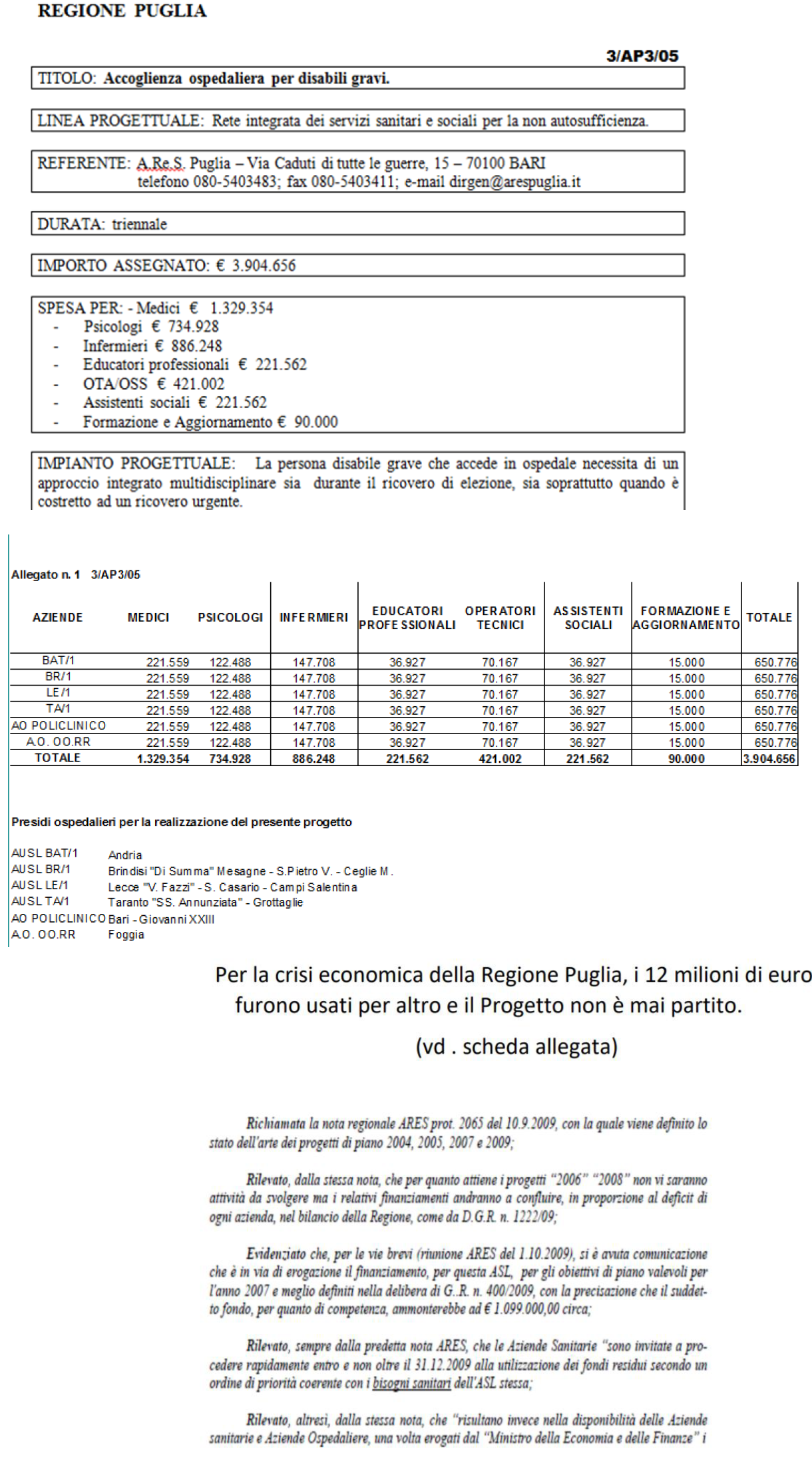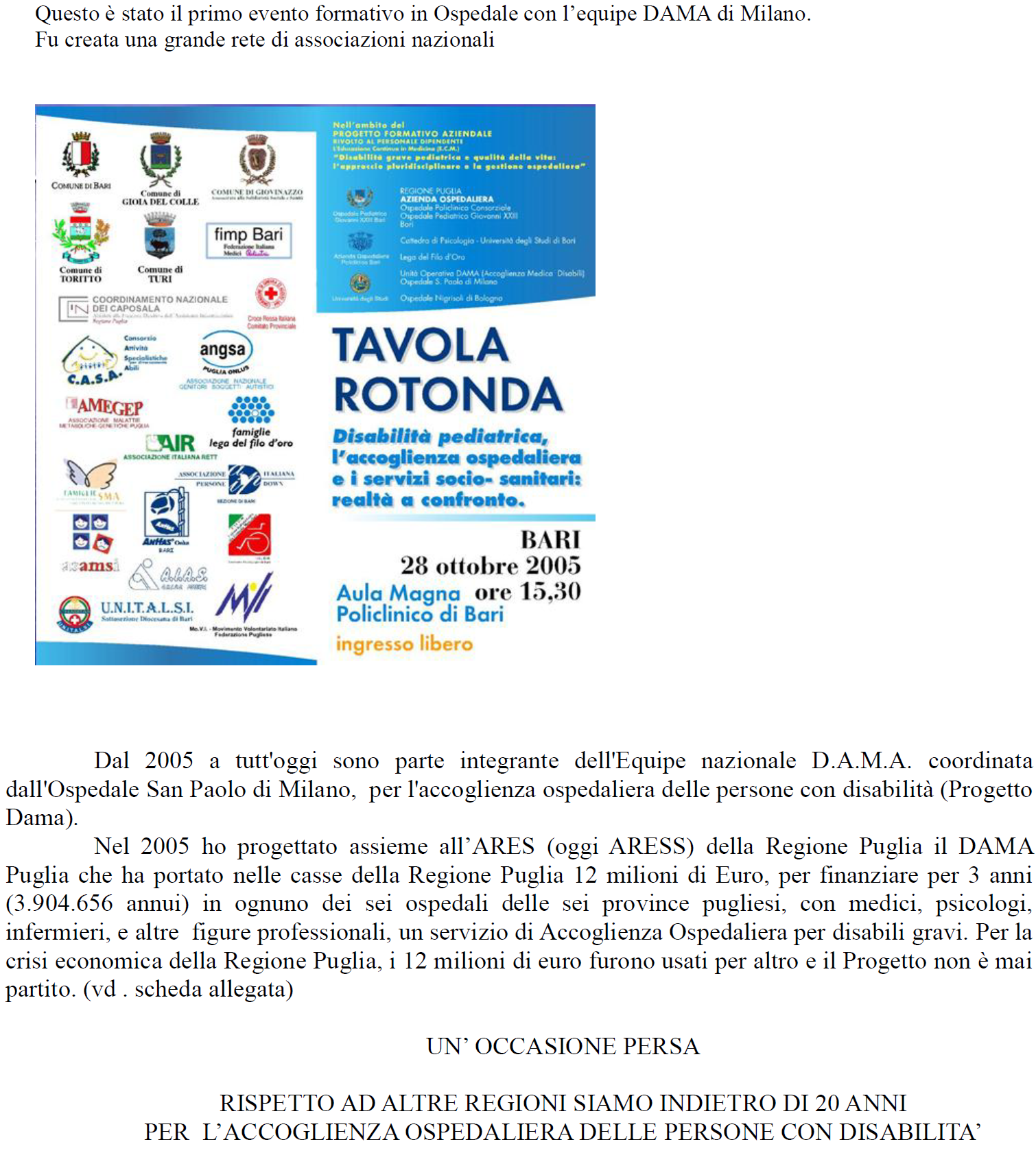 PROGETTO DAMA: SONO 16 ANNI CHE LA REGIONE PUGLIA NON LO RITIENE OPPORTUNO ED ESSENZIALE AD ATTUARLO