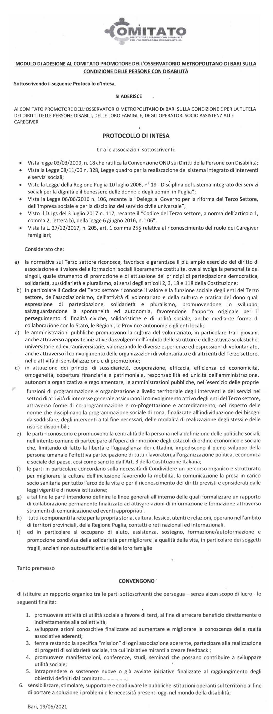 Qui di seguito viene riportato il Protocollo di Intesa che è scaturito da questi tre incontri.