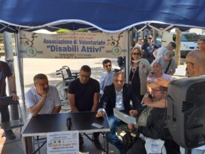 In seguito a questa “scarrozzata” in Piazza della Vittoria, presso il gazebo, hanno invitato i tre candidati Sindaci a sottoscrivere un documento di intenti, nel quale si impegneranno nel 1° anno del loro mandato, in qualsiasi ruolo rivestiranno, ad intraprendere azioni per rendere accessibili gli esercizi aperti al pubblico e le strutture ricettive e/o alberghiere, la partecipazione ai lavori delle Commissioni Consiliari in sede adeguate ad ospitare gli uditori, l’istituzione della figura del Garante dei diritti della persona con disabilità, la ricostituzione della Consulta sulla Fragilità, la realizzazione di un servizio di Taxi sociale, per migliorare la mobilità delle persone con disabilità in carrozzina, attrezzare adeguatamente alcuni tratti di spiaggia pubblica per le persone con disabilità. Dopo che i tre candidati Sindaci sono intervenuti in merito alle richieste contenute nel documento di intenti, hanno deciso di sottoscrivere questo impegno.