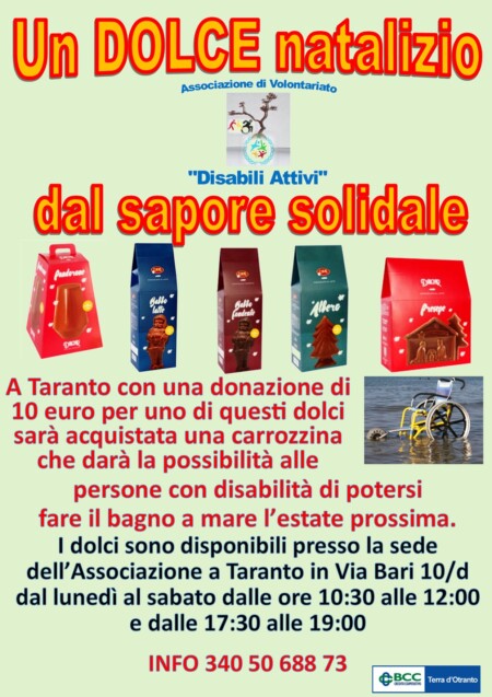 DISABILI ATTIVI è un Associazione composta di persone con disabilità di vari Comuni della Regione Puglia, che dal 2019 svolge tante attività ed eventi, malgrado, le soggettive ed oggettive difficoltà che comporta una disabilità, al fine di evidenziare quanta strada devono fare gli Enti Pubblici e/o Privati per poter attuare l’inclusione sociale che in varie occasioni viene sbandierata da ogni loro rappresentante.