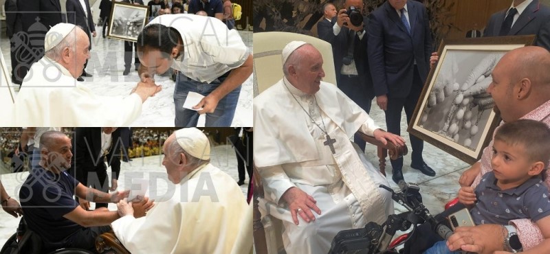 Santità, siamo un gruppo di persone con disabilità della Regione Puglia che, oggi sono qui al Suo cospetto per ringraziarLa della grande opportunità che ci viene data. Noi rappresentiamo persone con disabilità lievi, medie, gravi e gravissime, che tanto avrebbero voluto incontrarLa, ma, che, a causa delle loro condizioni, non sanno cosa sia la vita fuori dalle pareti della propria casa, affidati alle cure e all’amore delle loro famiglie che si sacrificano fino all’inverosimile. Ecco ci consideri come un mondo di persone invisibili. Sì, Santità, noi siamo quasi invisibili per chi ci governa. La condizione dei disabili in Italia meriterebbe grande attenzione che, purtroppo, manca. Per la politica siamo inesistenti.